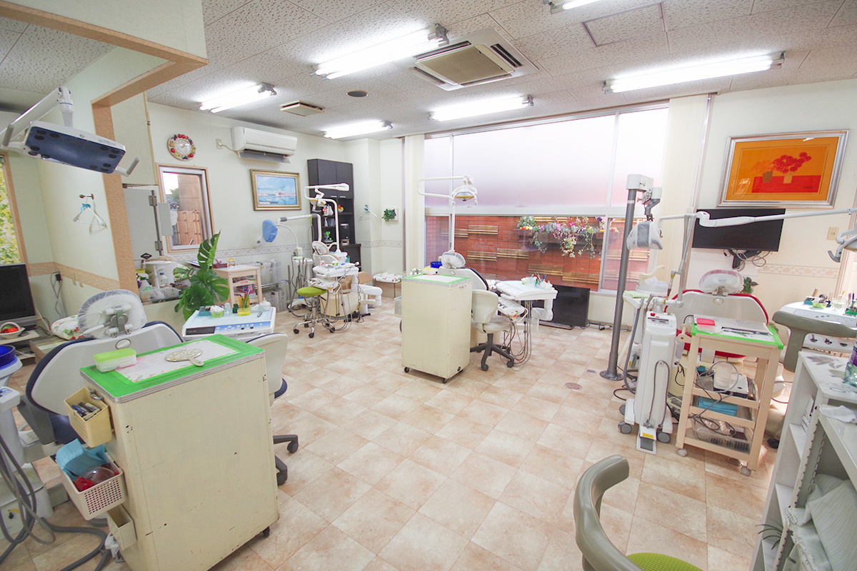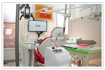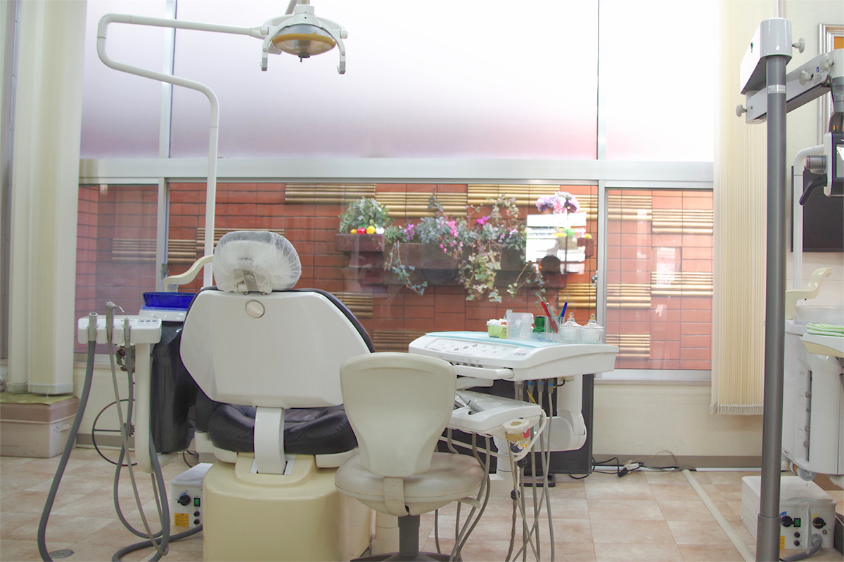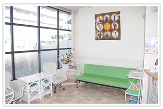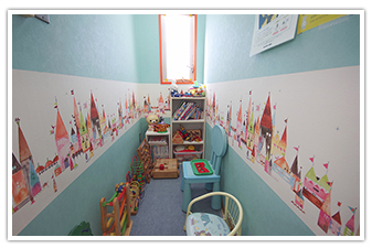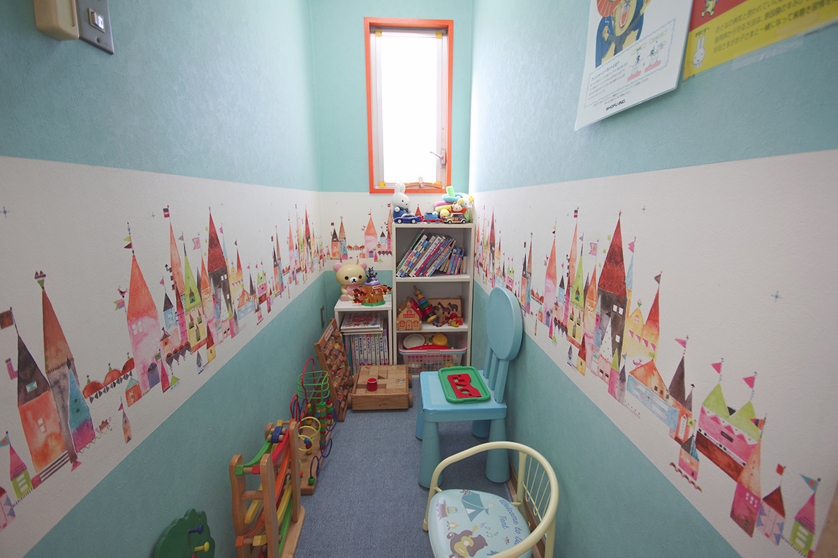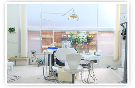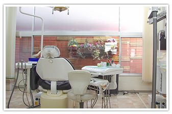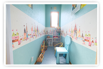 ゆったり落ち着いて診療していただけるよう、チェア前の外壁には、緑から水が落ちる噴水を設置してあります。診療室内にキッズスペースがありますので、小さなお子様連れでも安心して治療に専念していただけます。